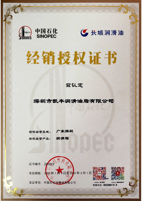 長城潤滑油經銷授權證書2021年(潤滑脂)